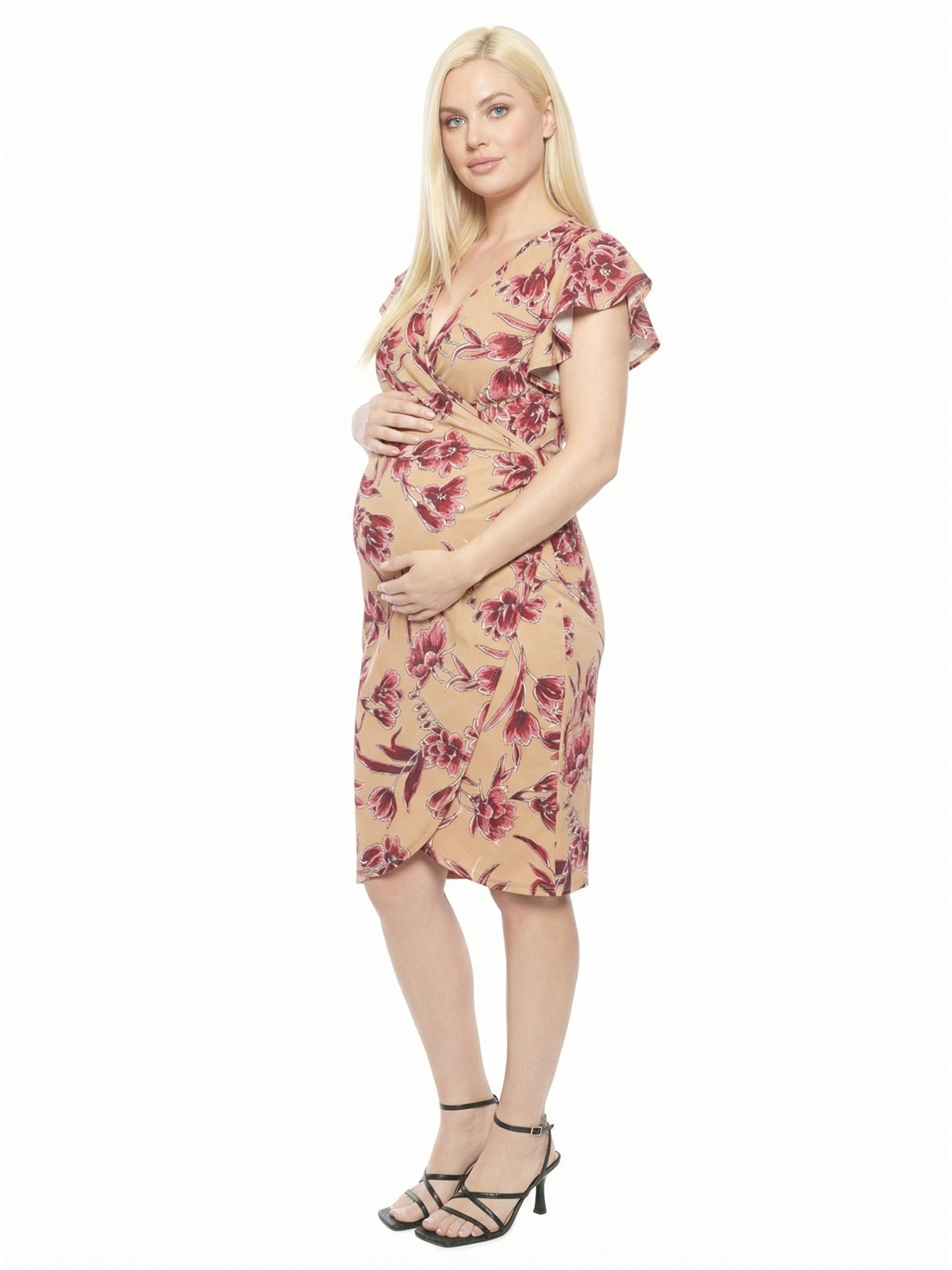 Elevate Maternity Floral Flutter Sleeve Wrap Knee Length Dress