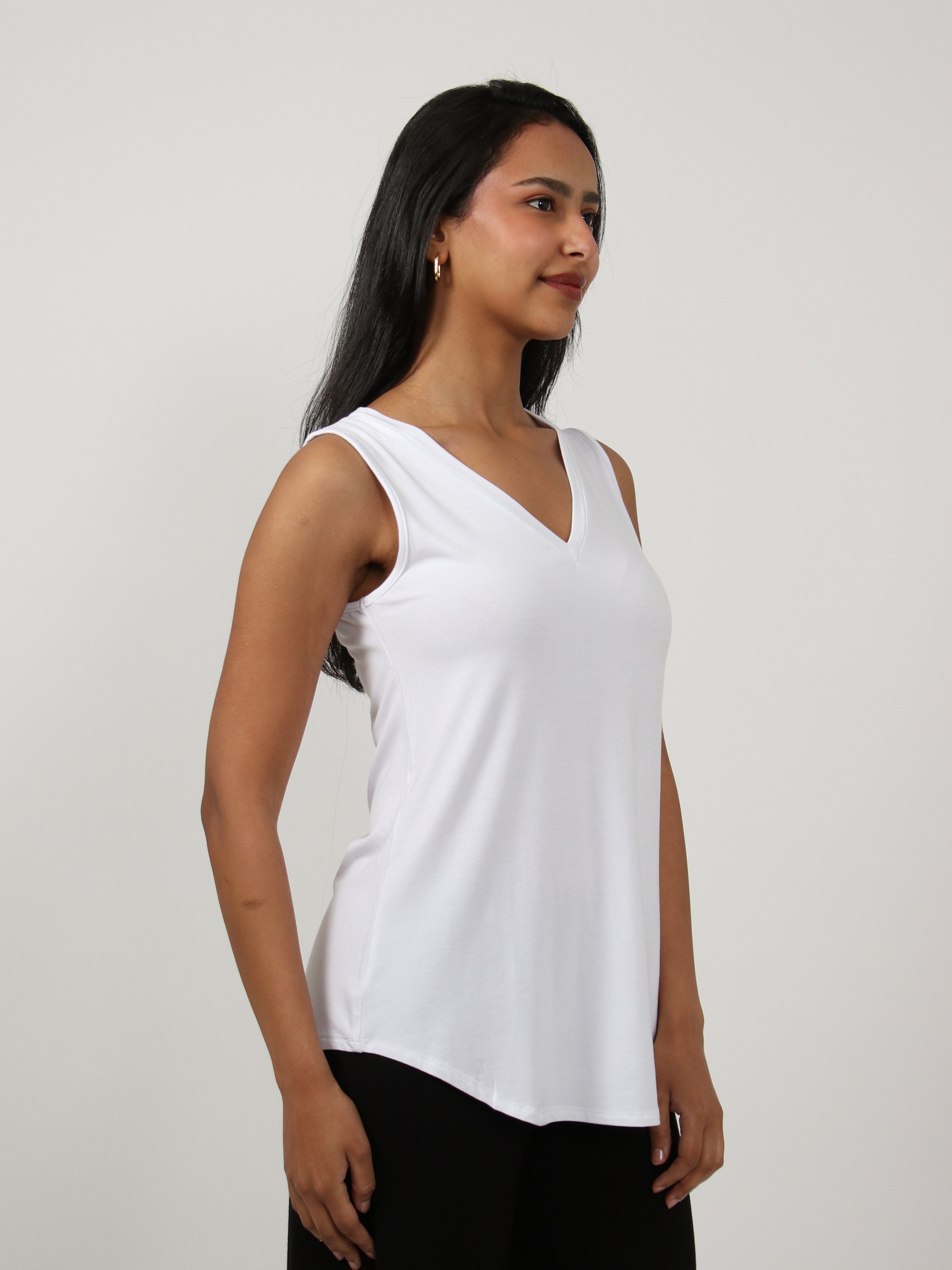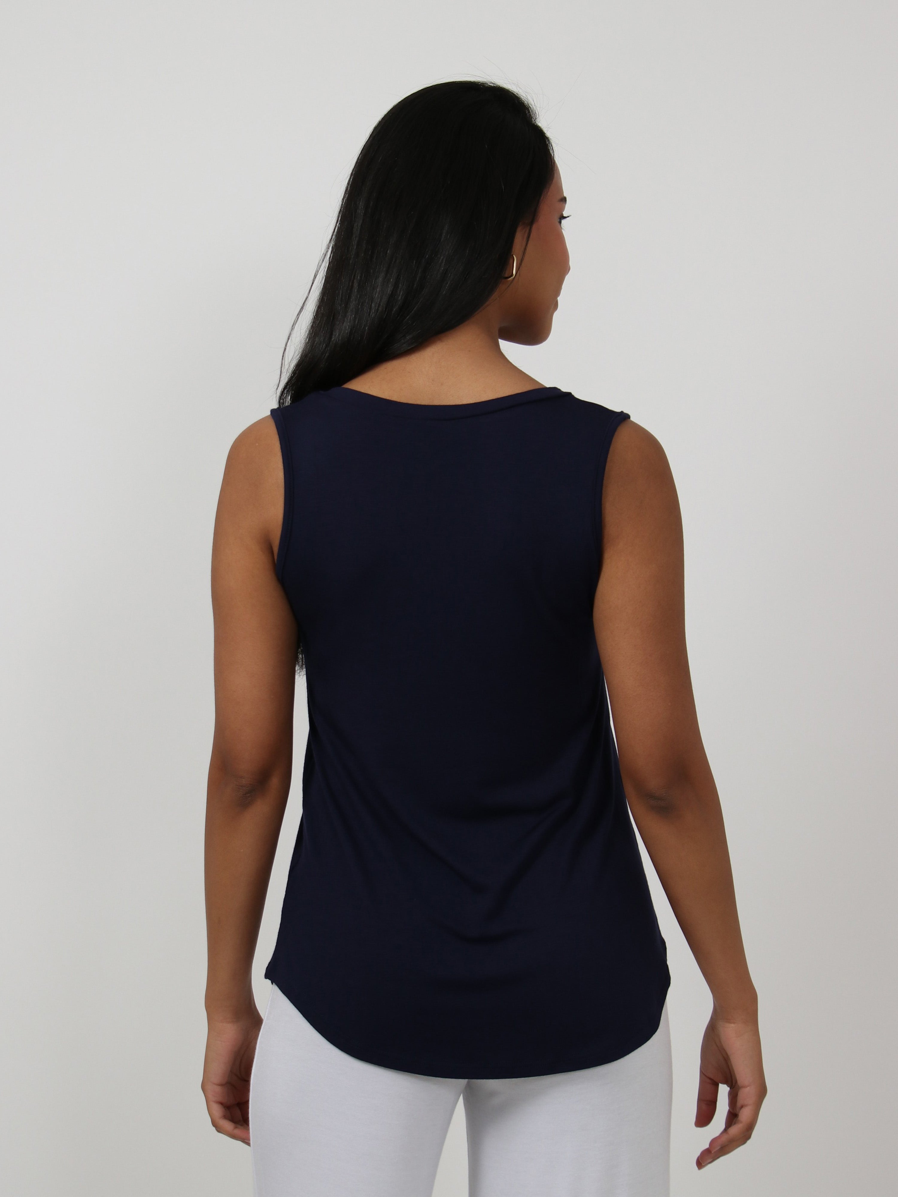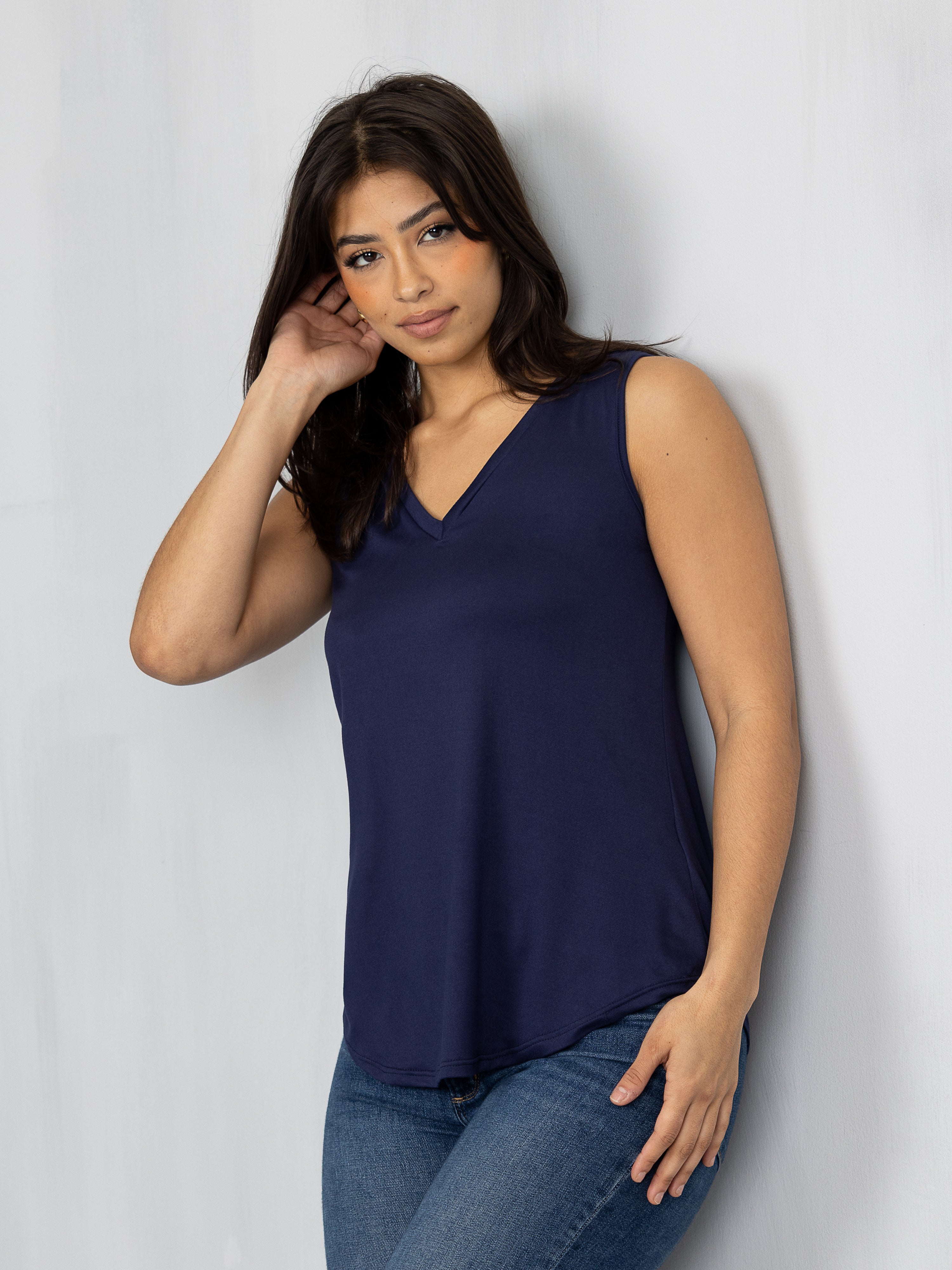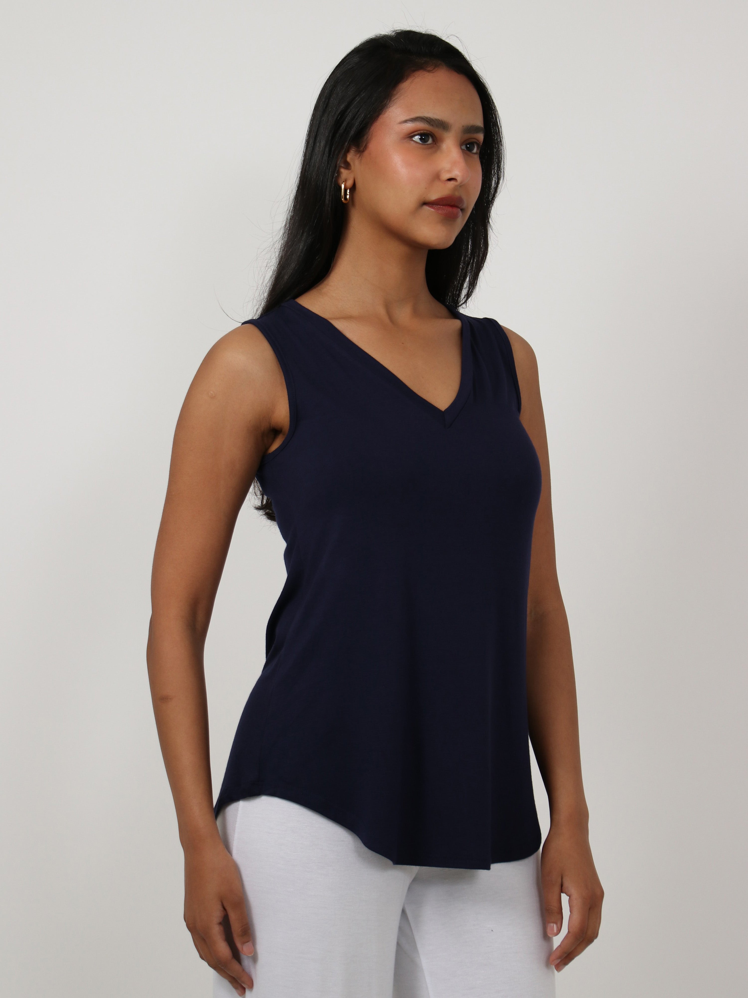 Basic Womens V Neck Round HemlineTunic Tank Top