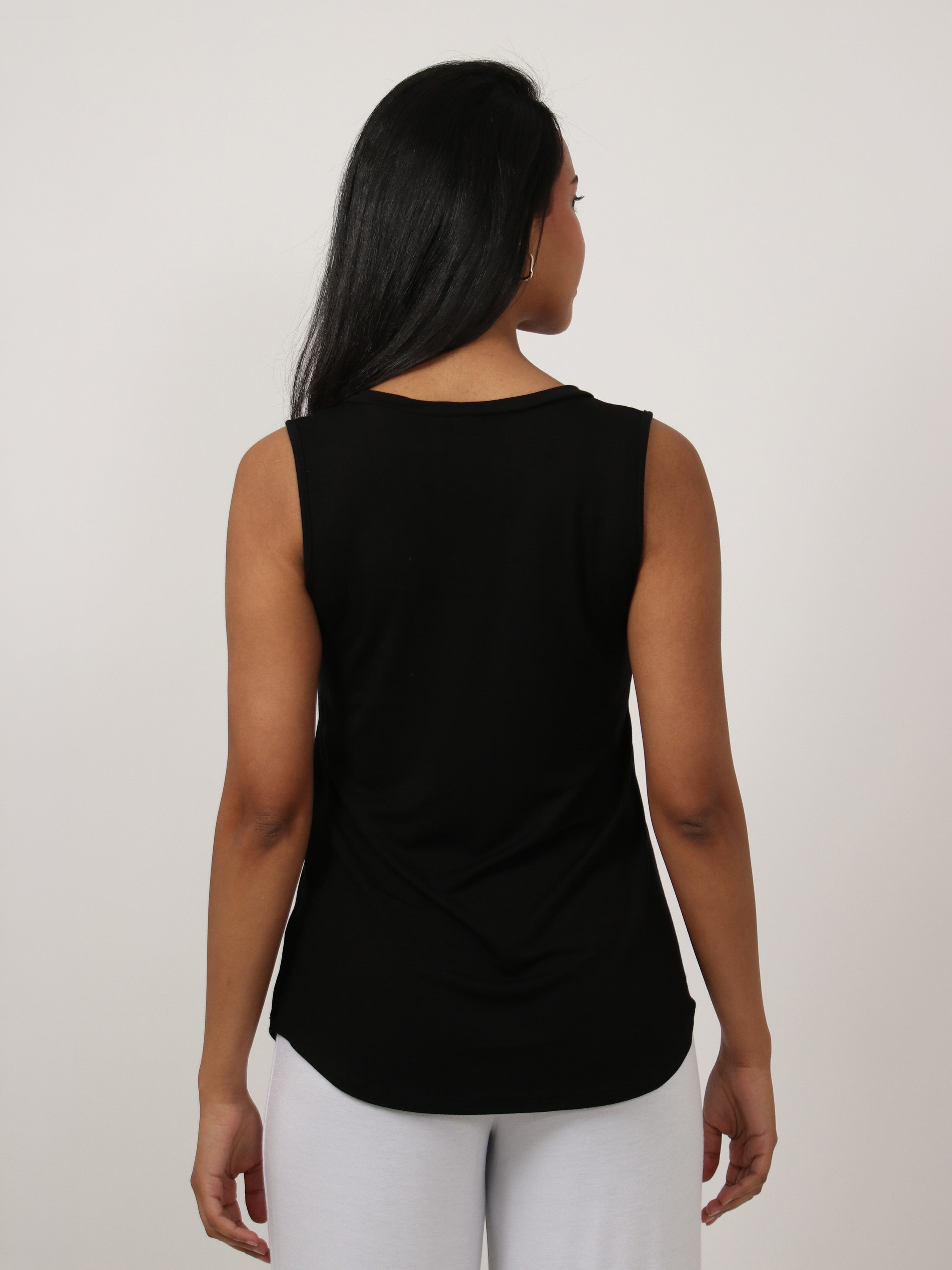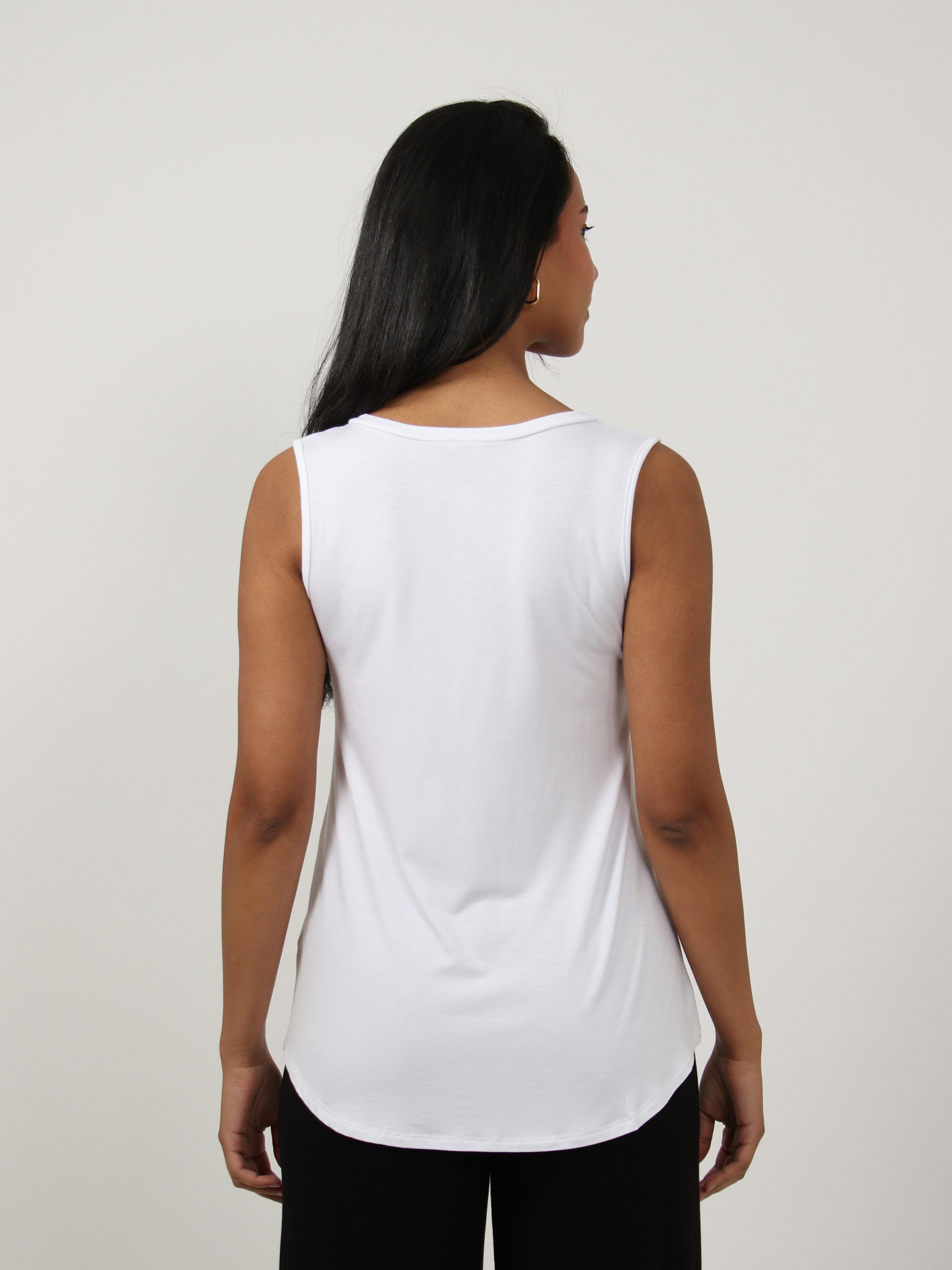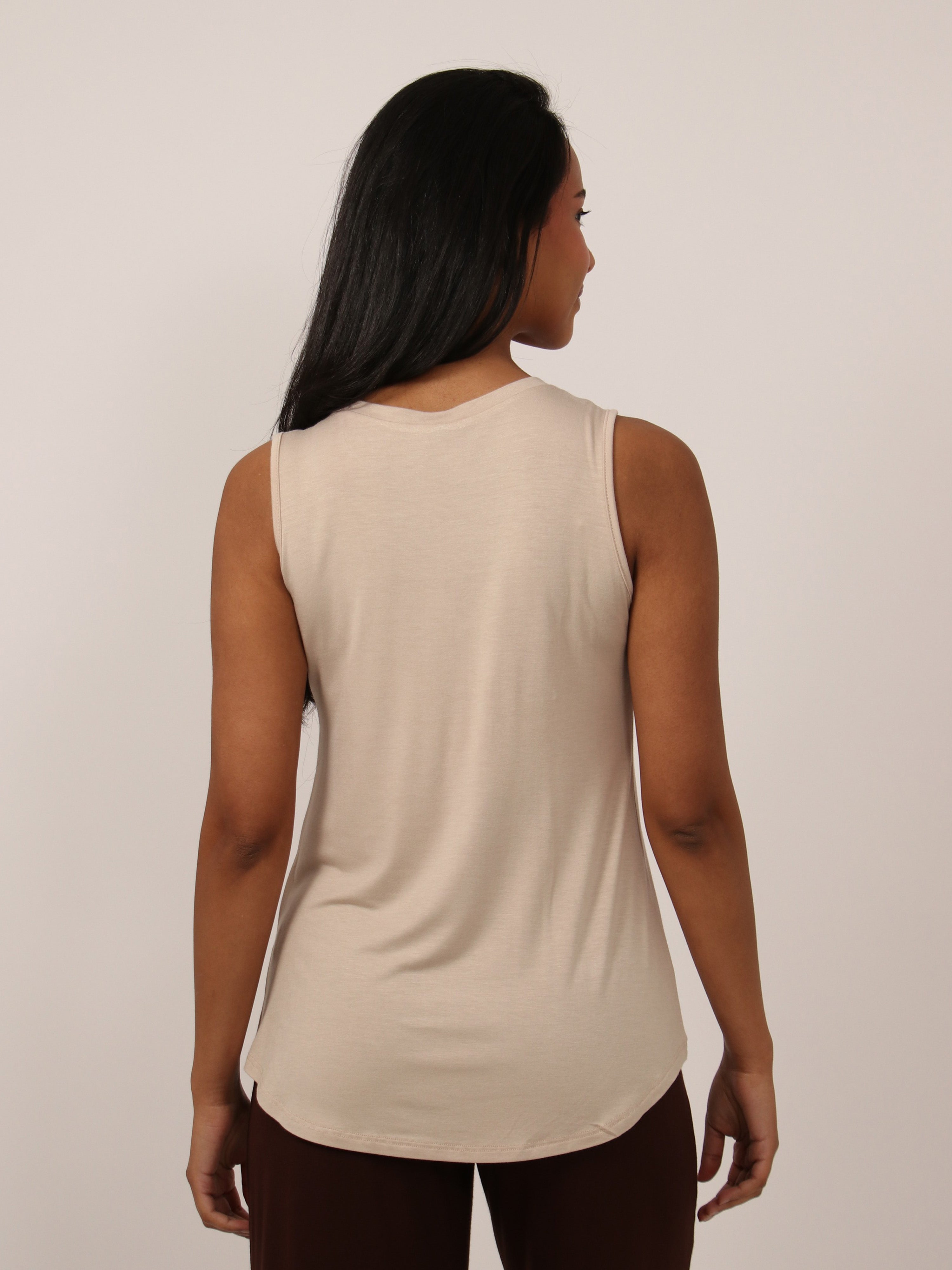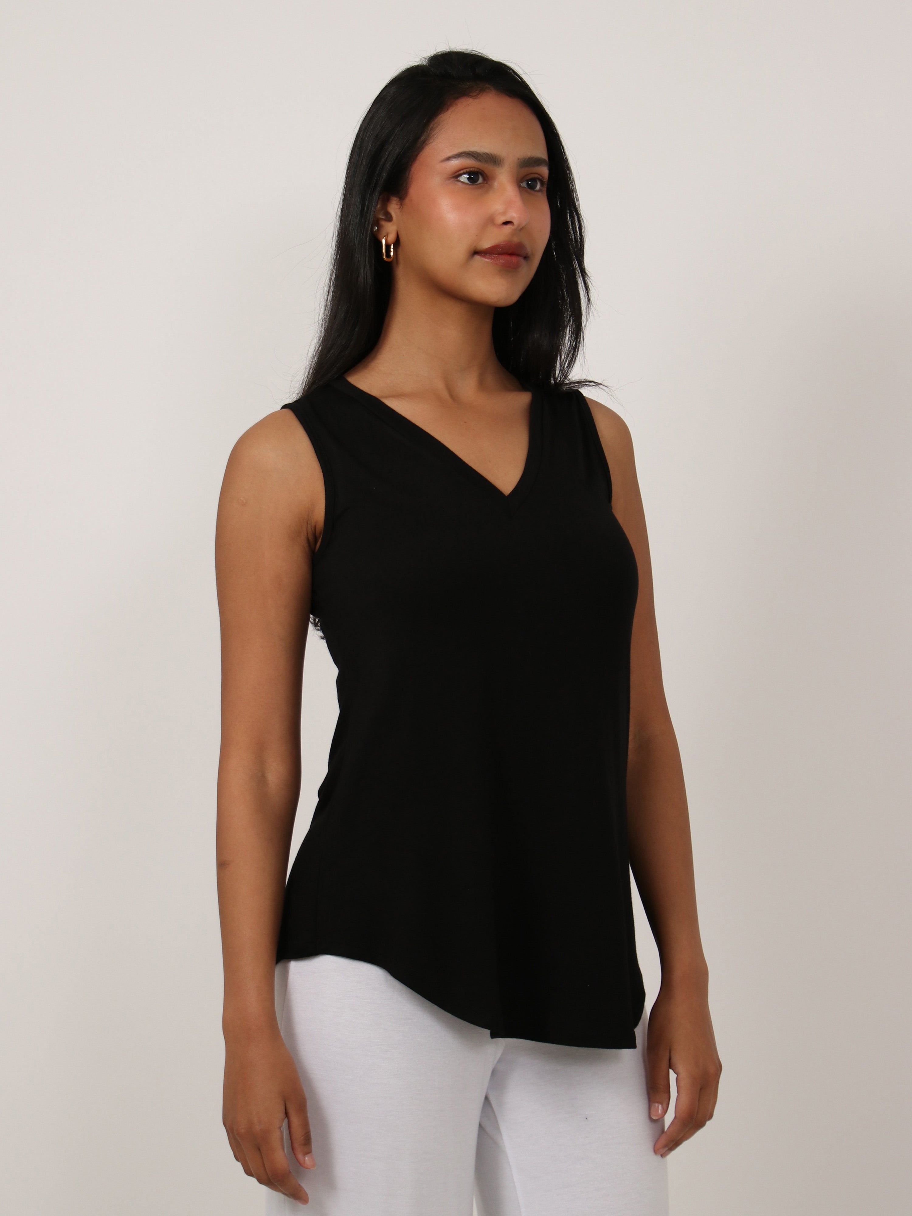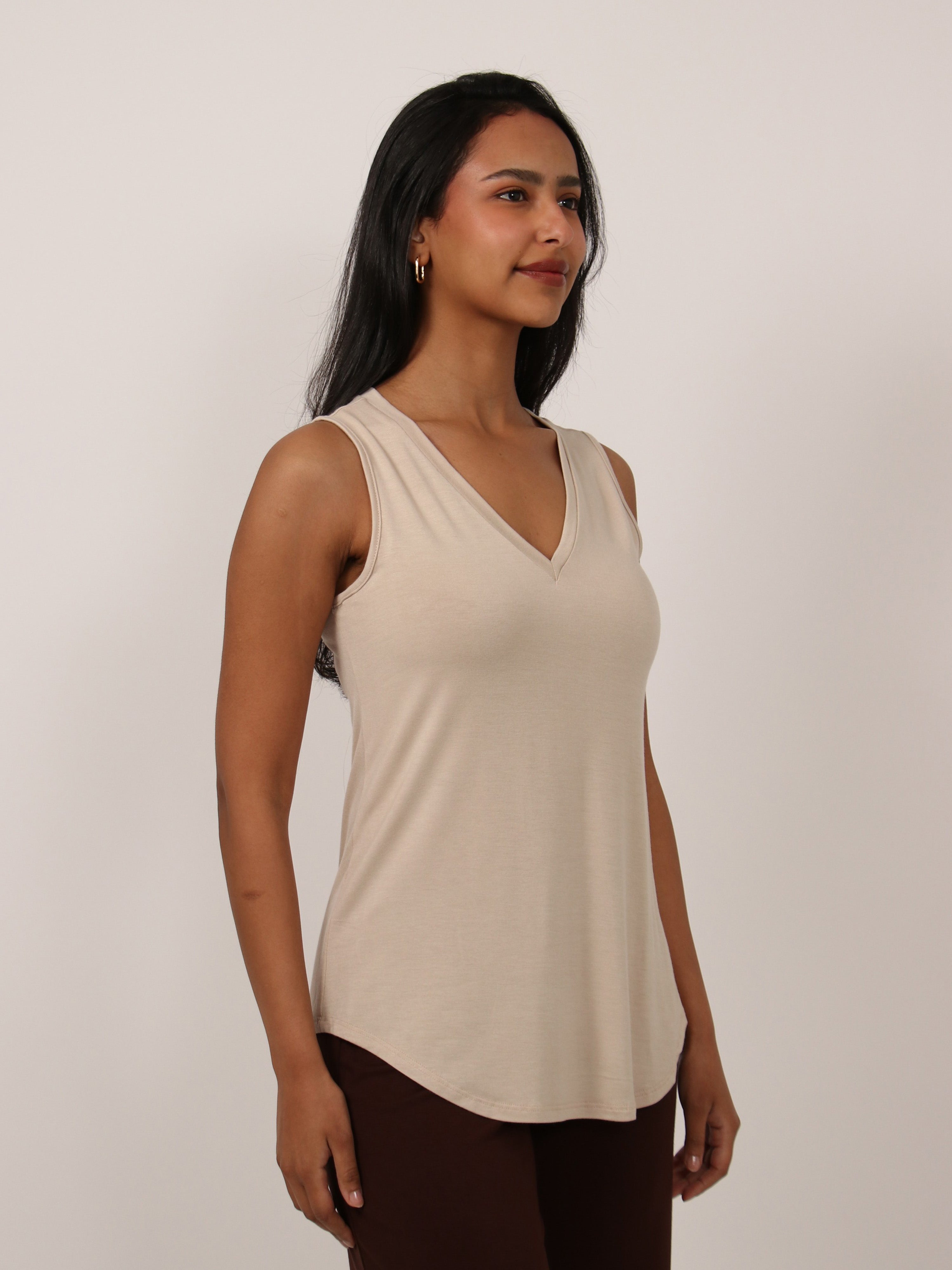 Basic Womens V Neck Round HemlineTunic Tank Top