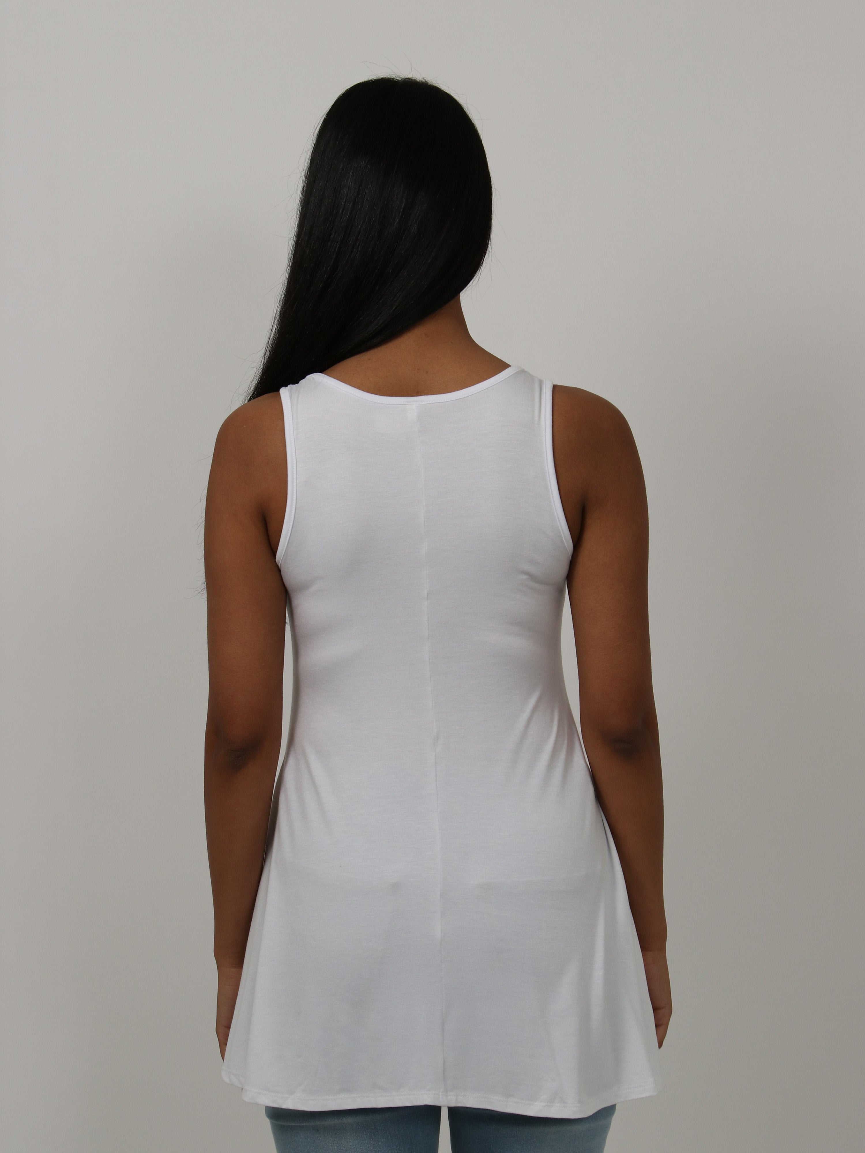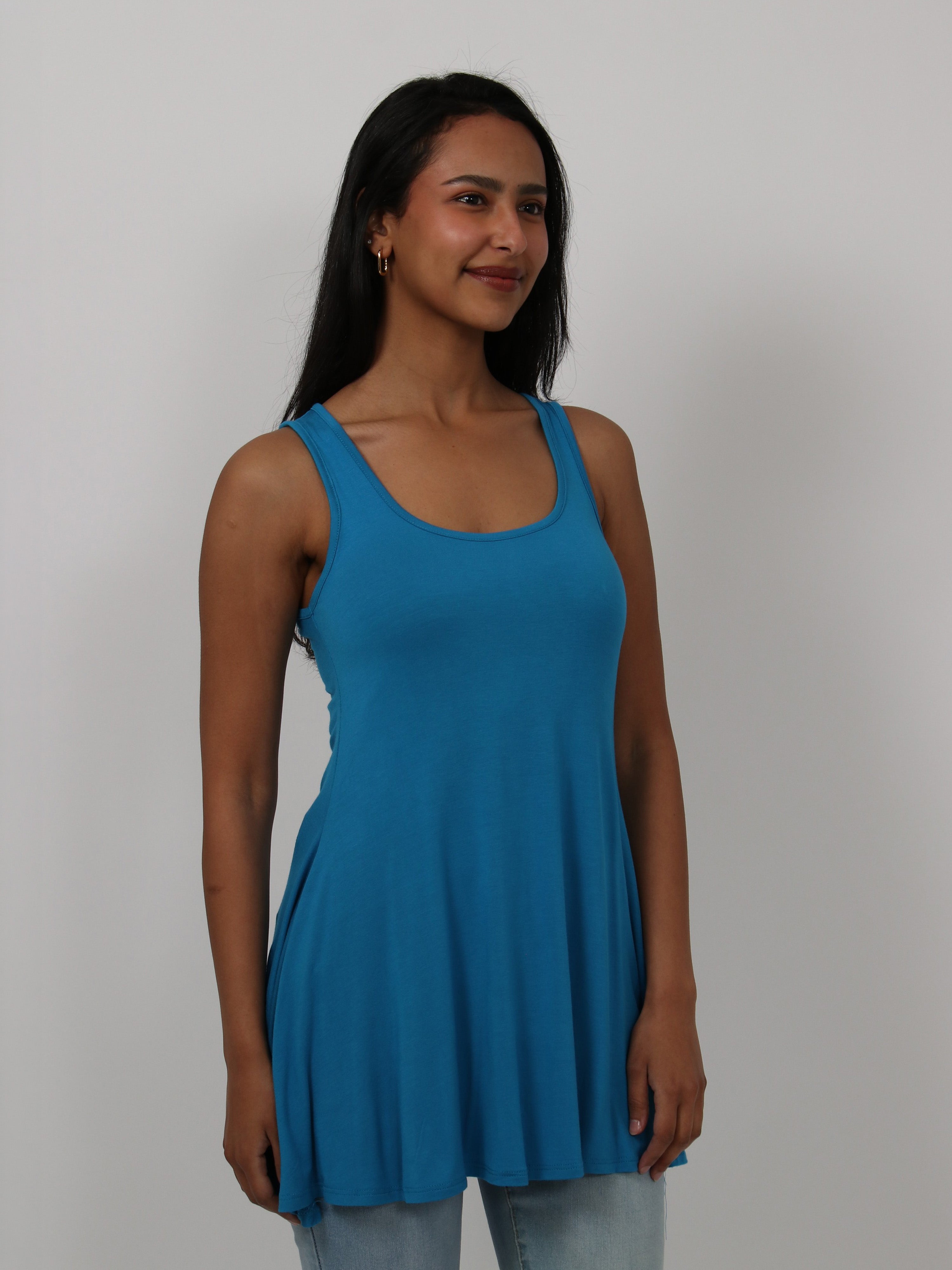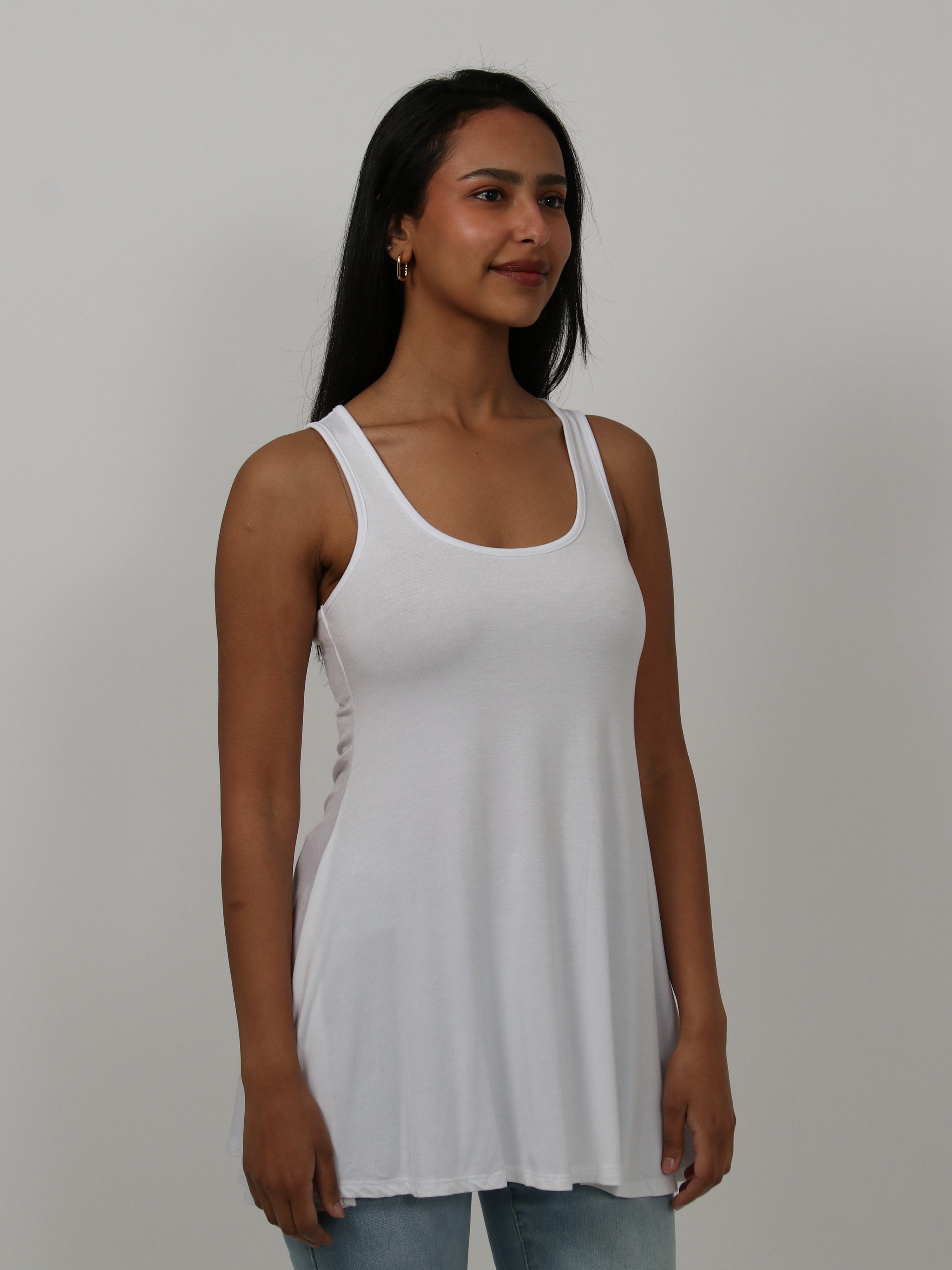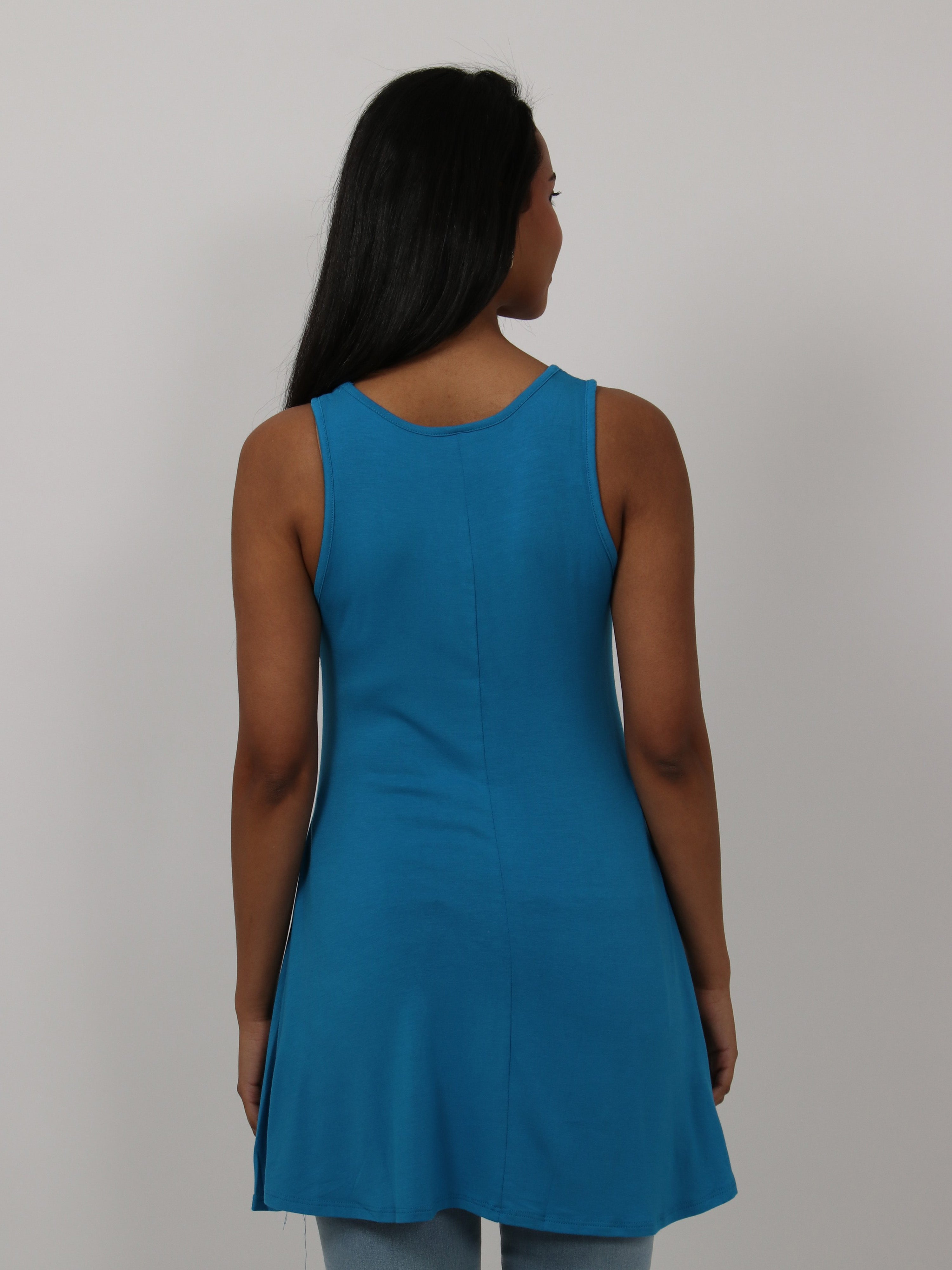 The flared shape of this tunic top accentuates the figure and is flattering for all. This piece comes in a variety of colors and can be dressed up and down for all occasions. The flowing hem, scooped neckline and soft silhouette makes this piece a trendy and comfortable must have.This long tank top is perfect for pairing with leggings, shorts, or jeans for an easy casual look. Made from a comfortable stretch material. Rayon Spandex Knit.