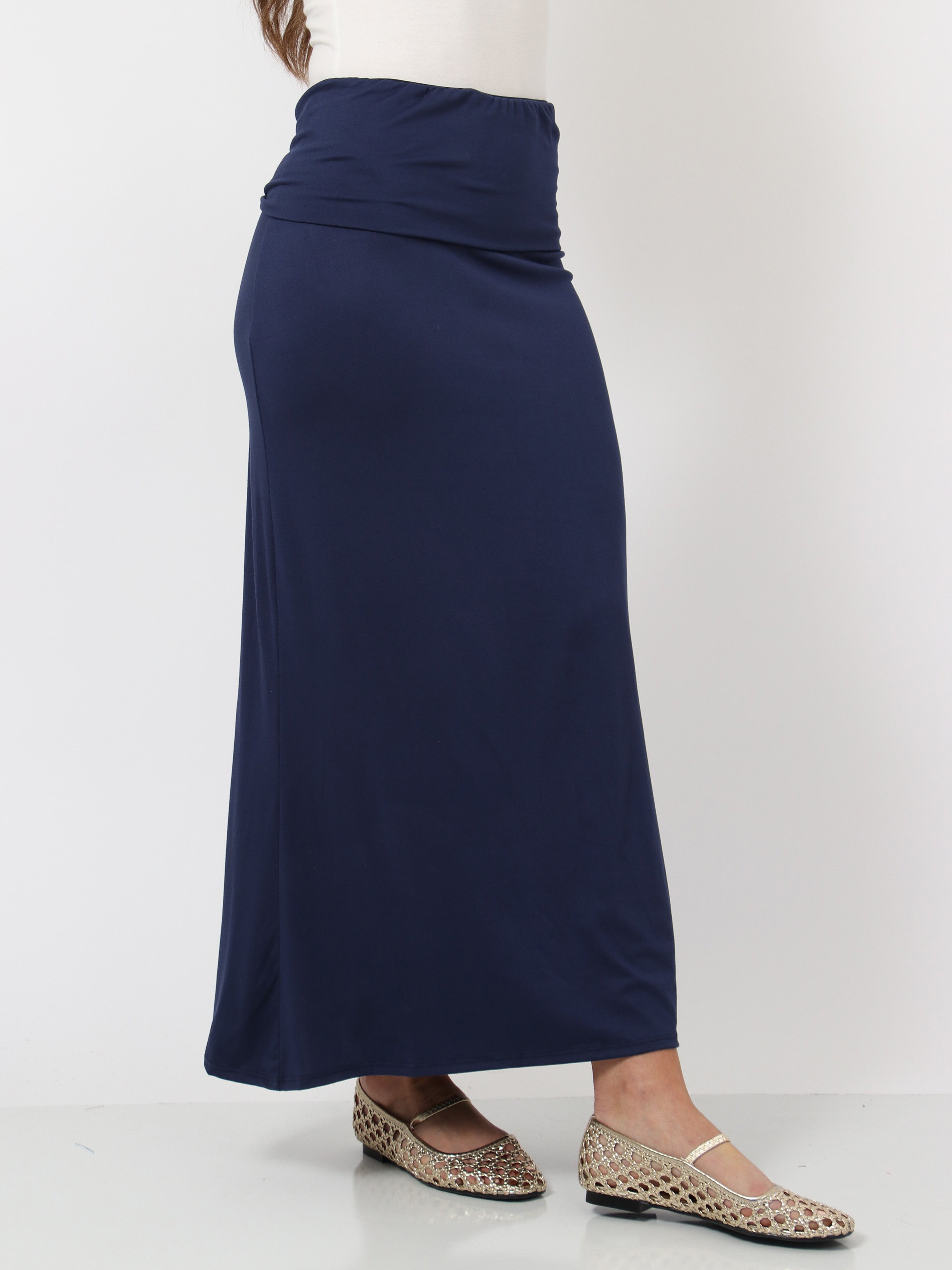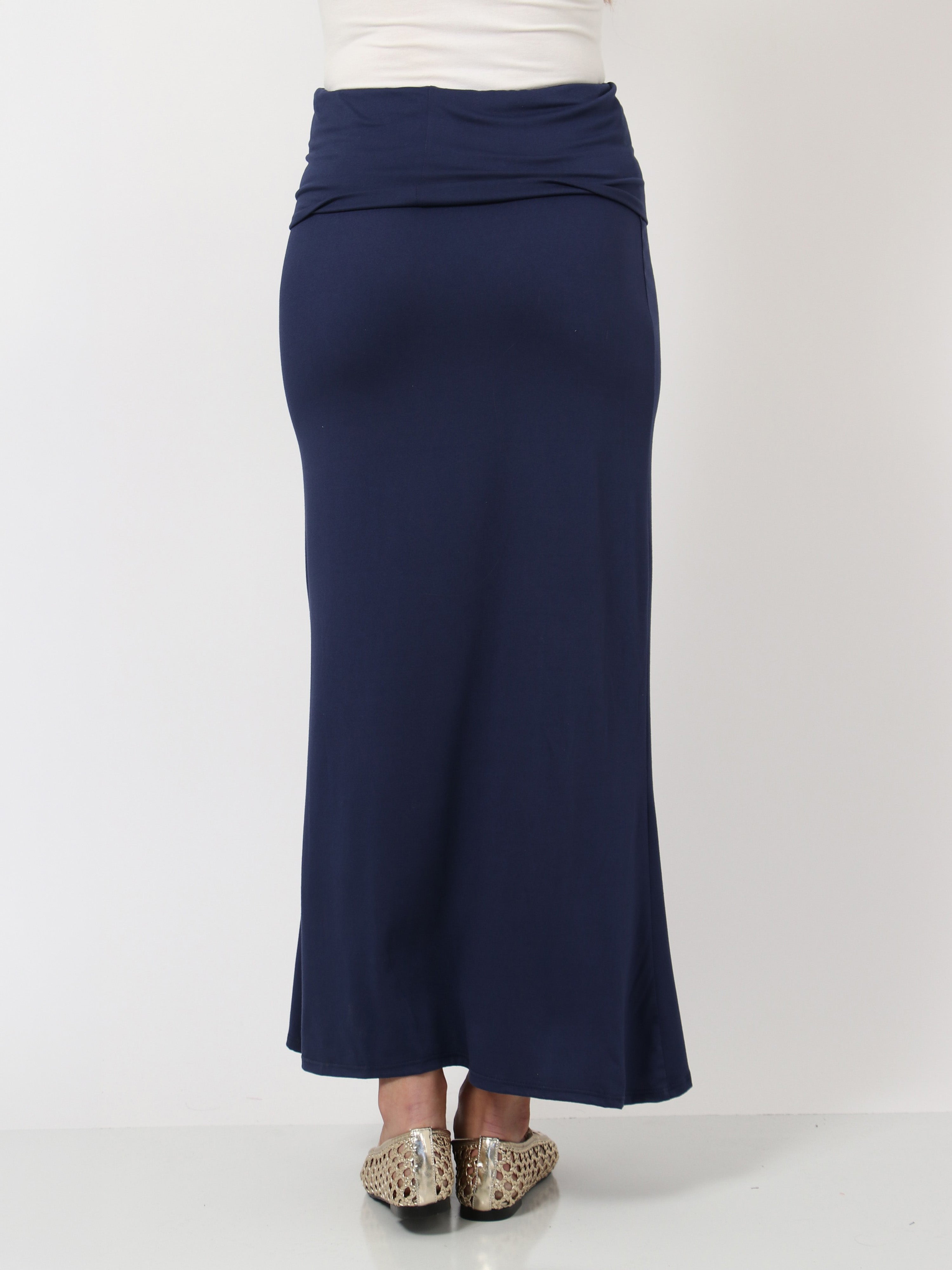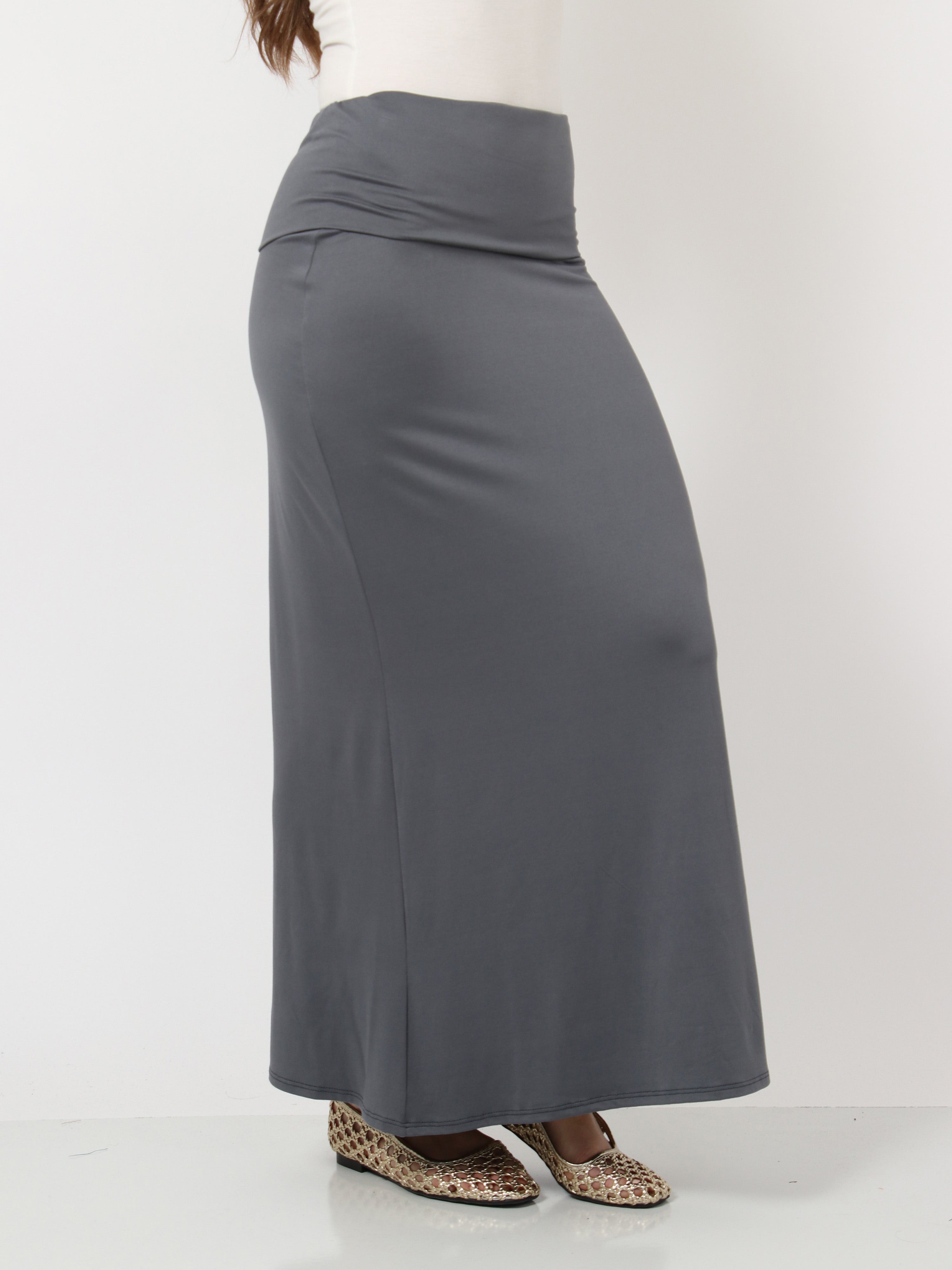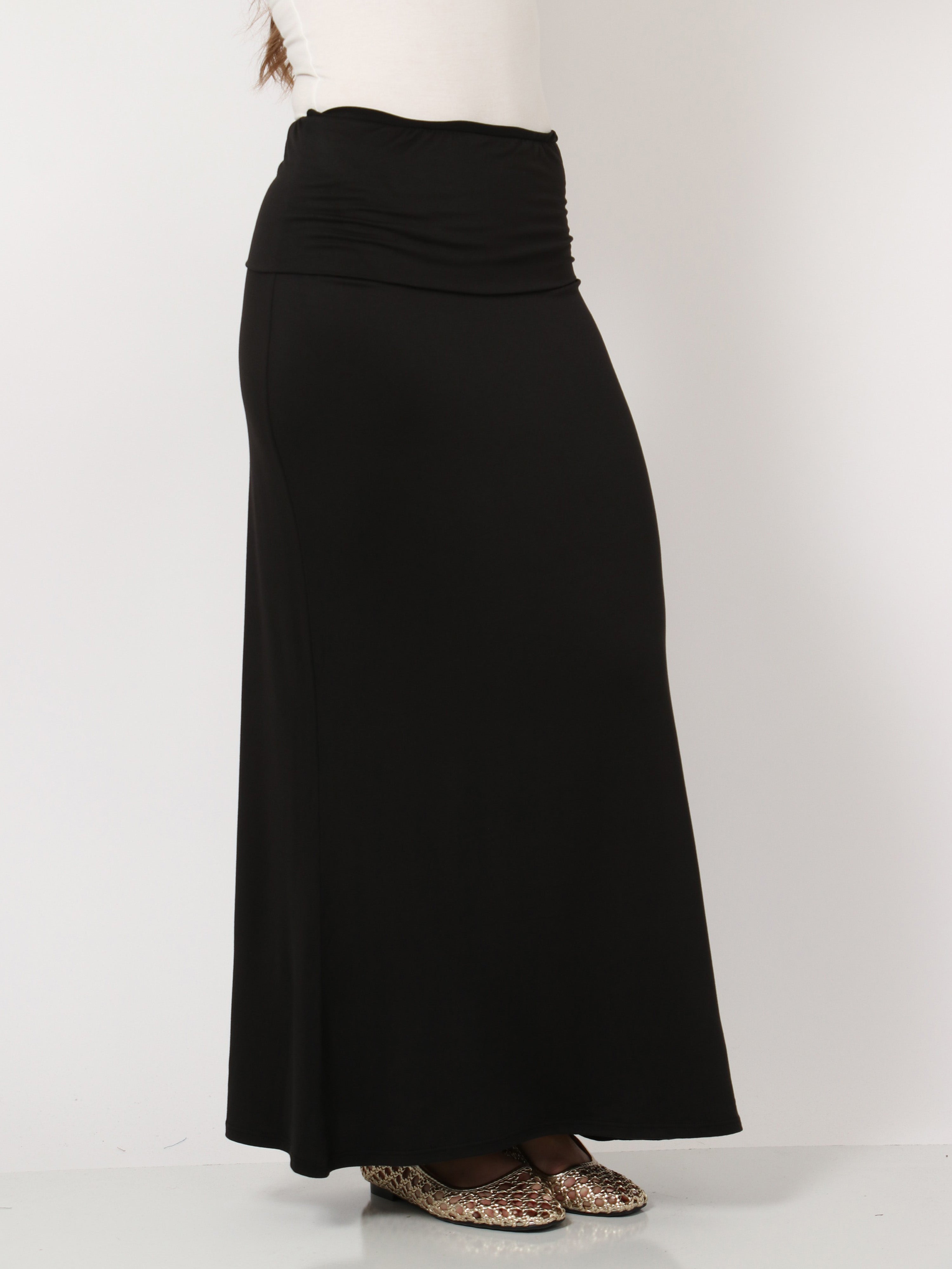 Basic Womens Comfortable Foldover Maxi Skirt