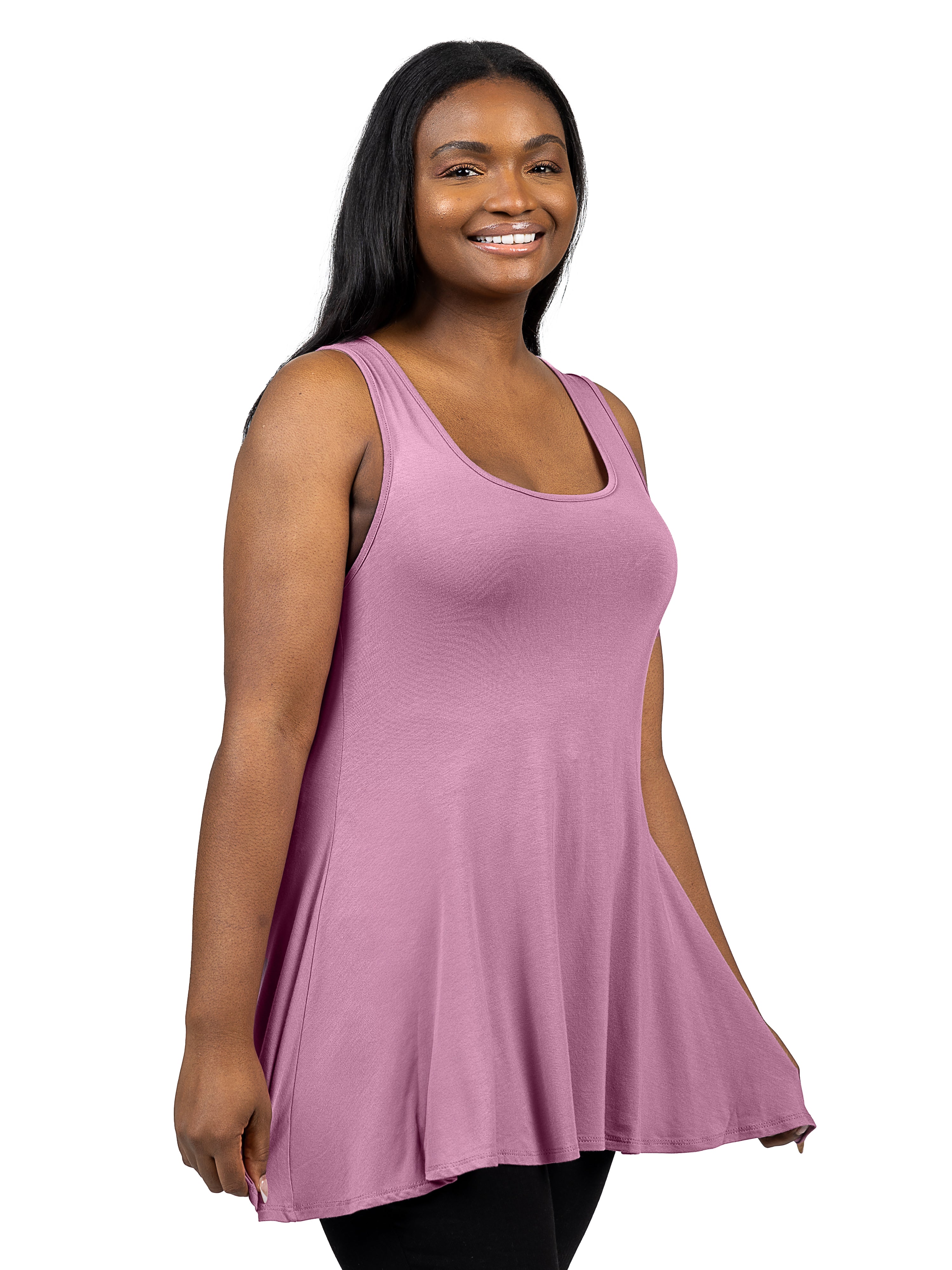 Embrace effortless style with this flared plus size tunic top from 24seven Comfort Apparel, featuring a scooped neckline, flowing hem, and soft silhouette that flatters every figure. Available in a variety of colors, it easily transitions from casual days to dressy occasions. Pair with leggings, shorts, or jeans for a relaxed look. It is machine washable and tumble dry for easy care.
