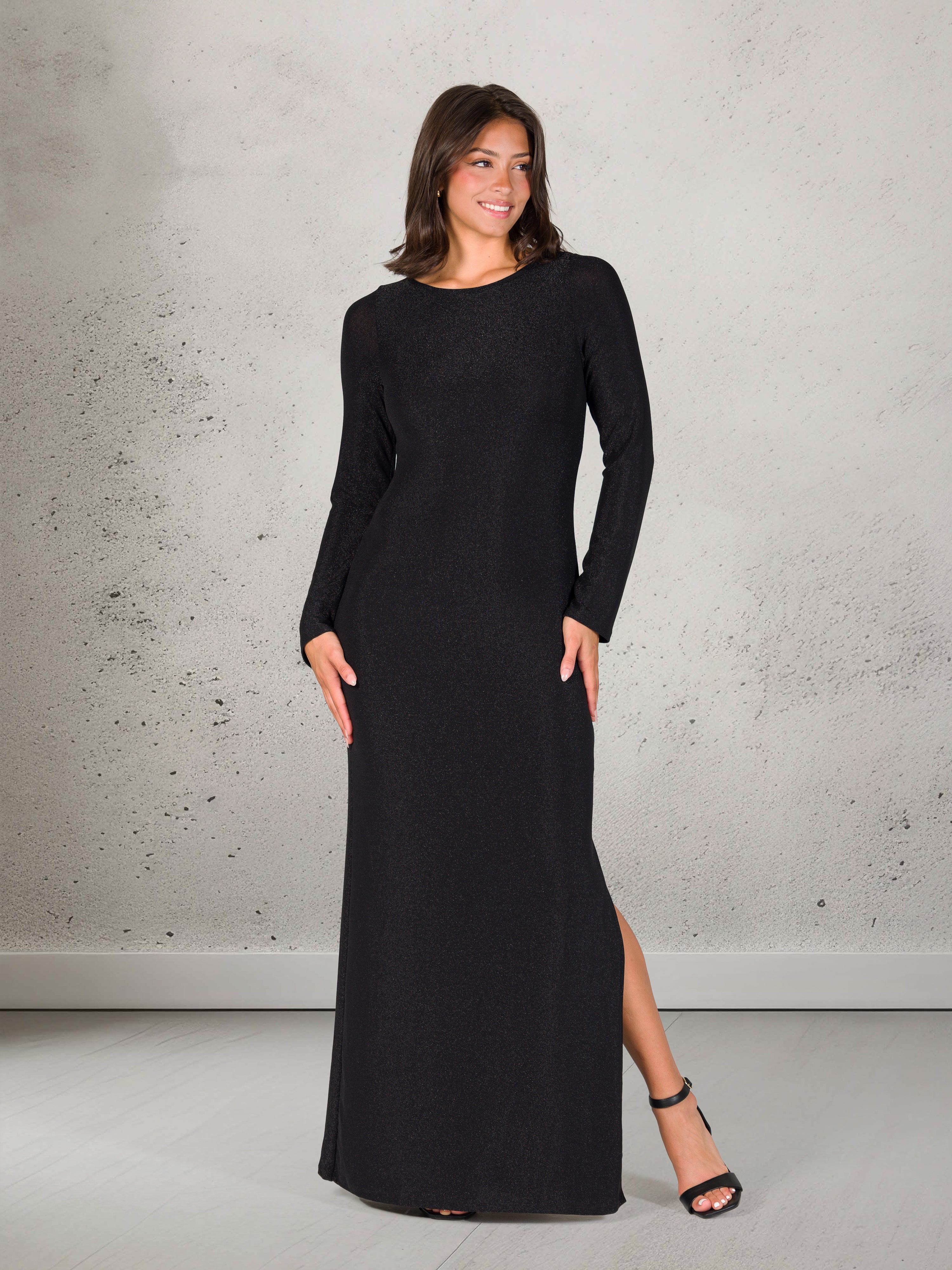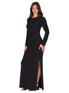 Elevate Womens Round Neck Long Sleeve Bodycon SSlit A Line Maxi Dress