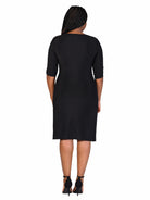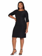 Elevate Curvy Boat Neck Elbow Sleeve Bodycon Knee Length Dress