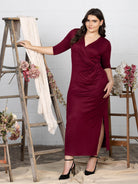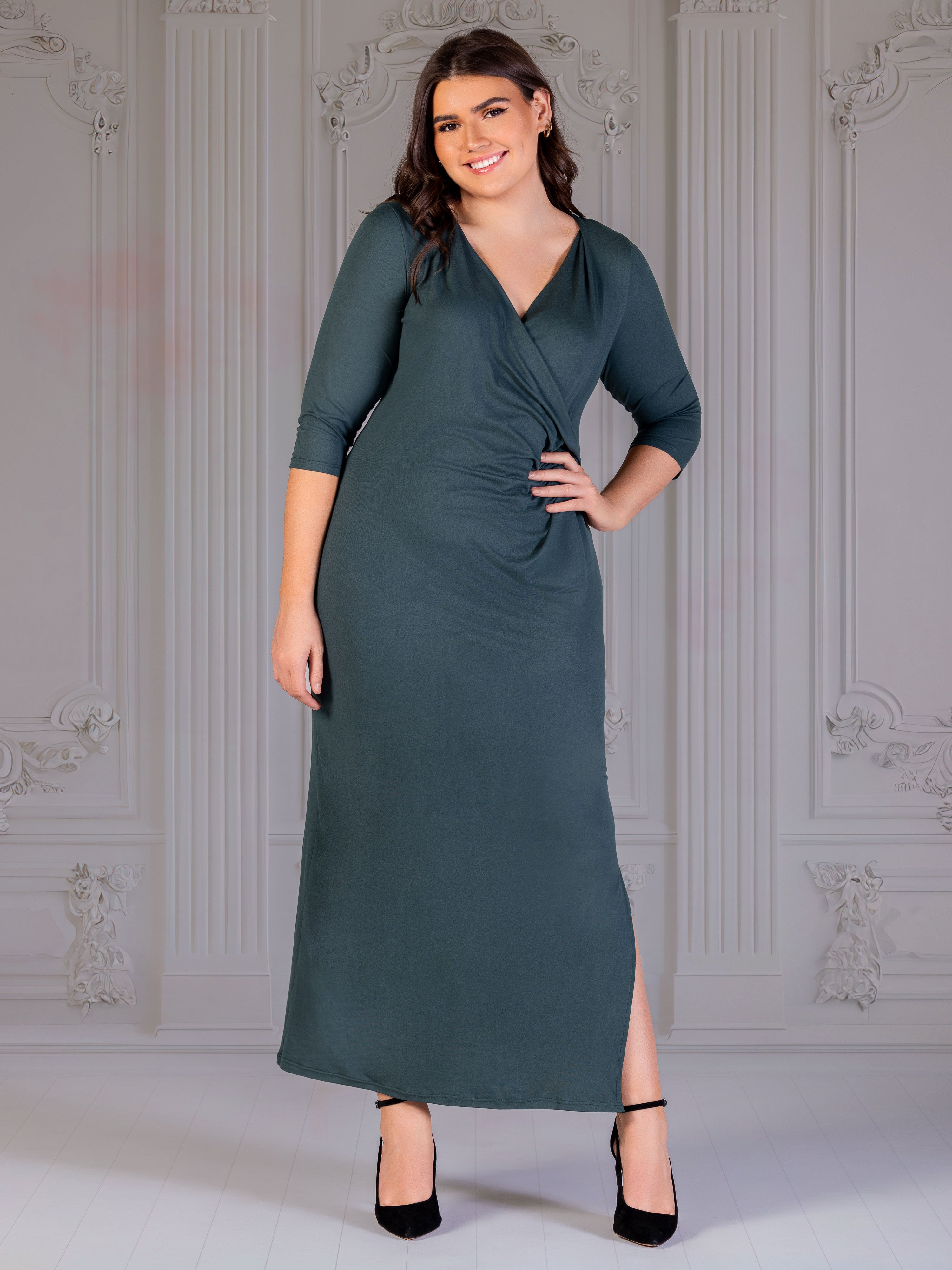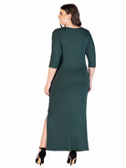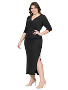 Elevate Curvy Three Quarter Sleeve V Neck Wrap Maxi Dress