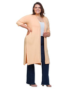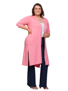 Essential Plus Size Open Front Knee Length Side Slit Duster Jacket