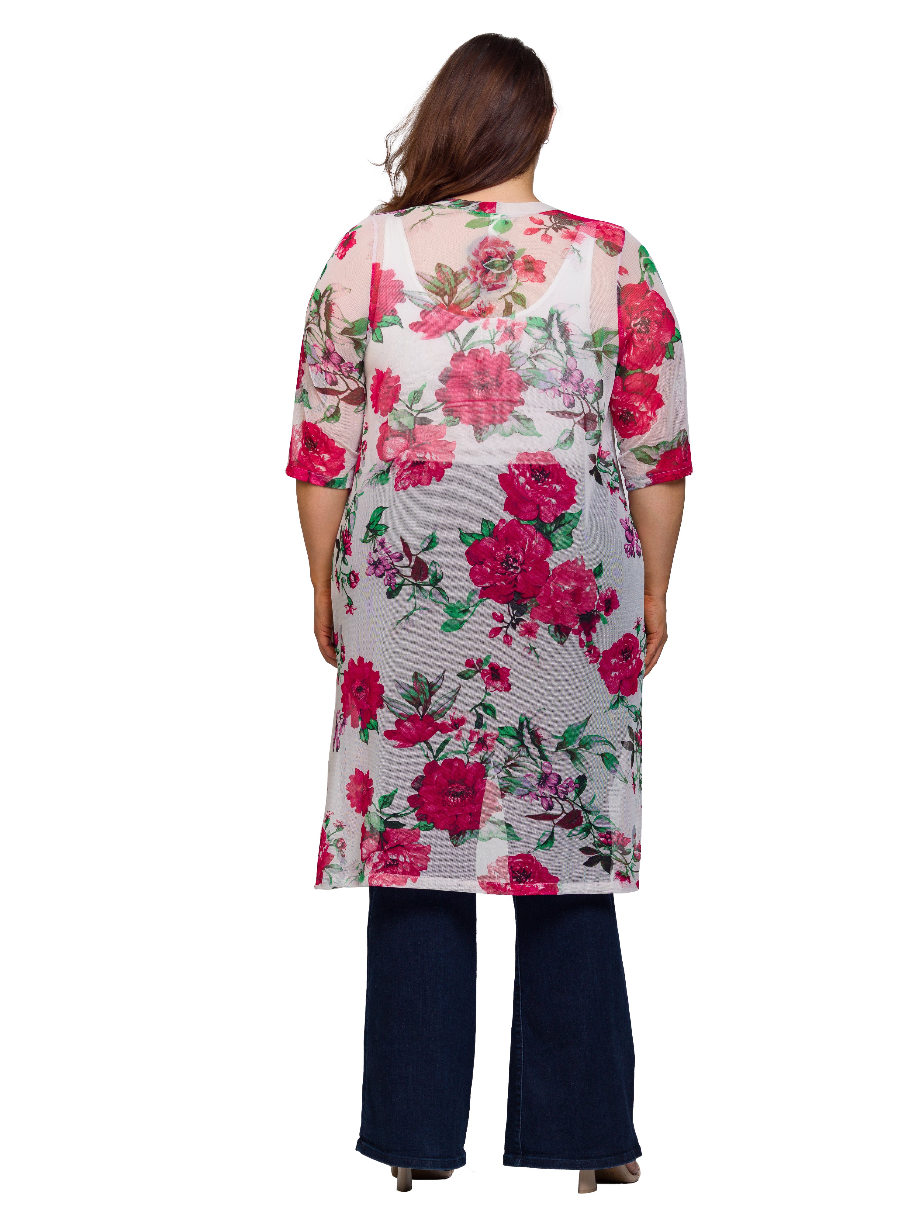 Essential Curvy Floral Open Front Knee Length Duster Jacket