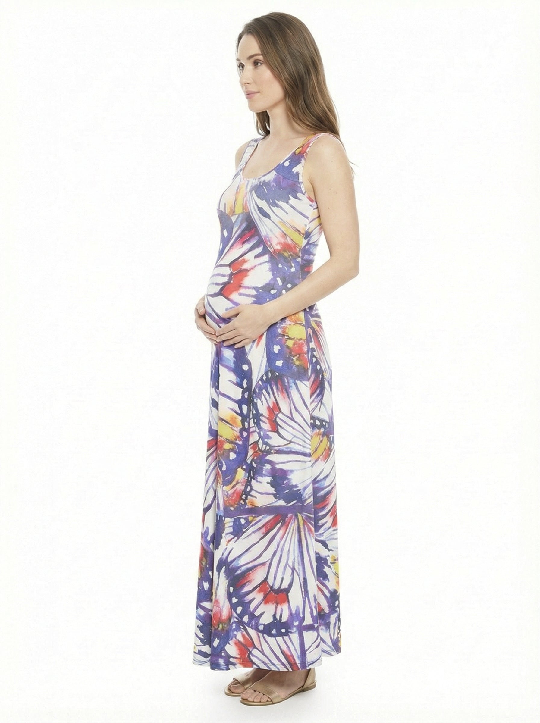 Essential Maternity Butterfly Scoop Neck Sleeveless A Line Maxi Dress