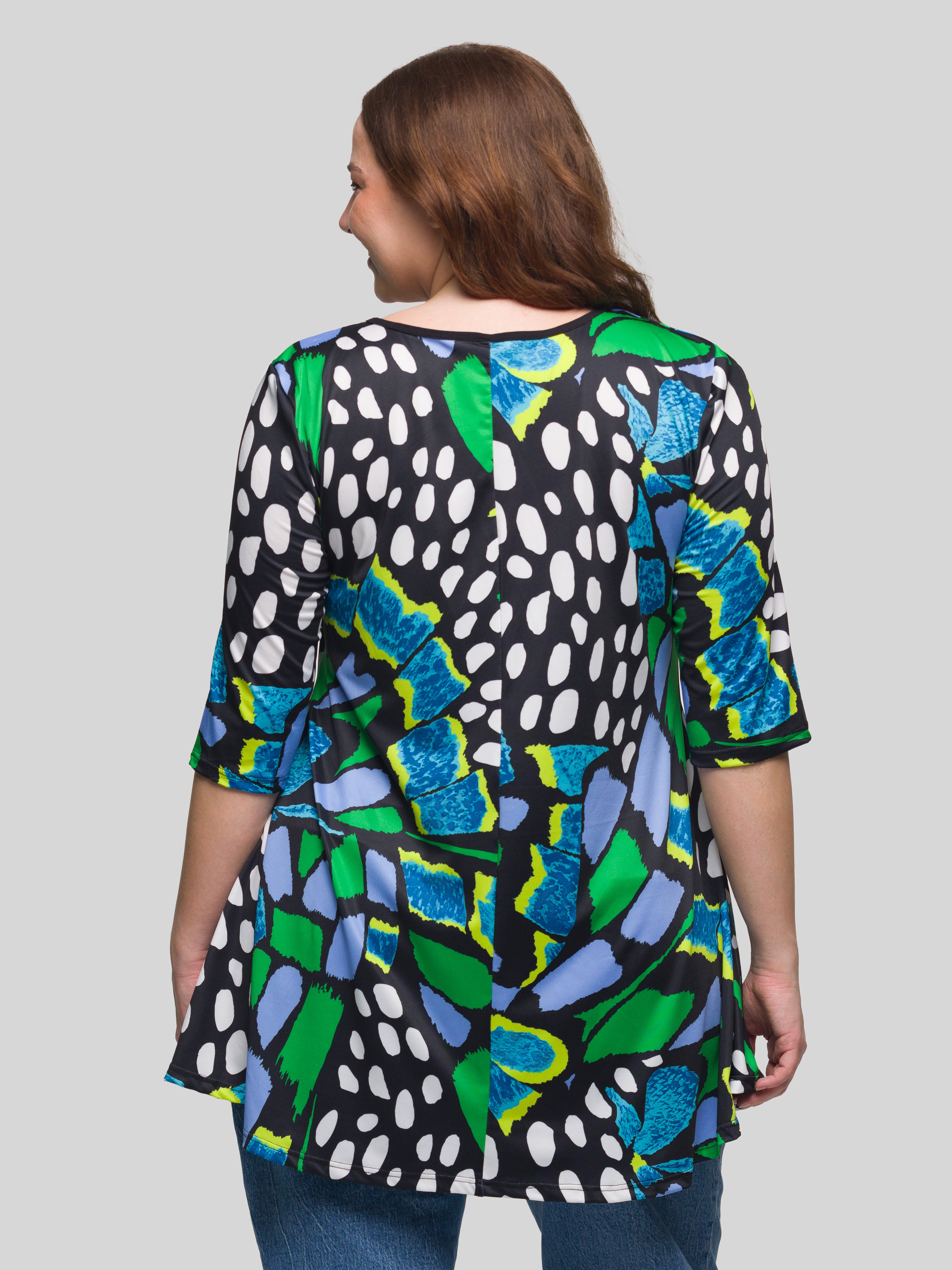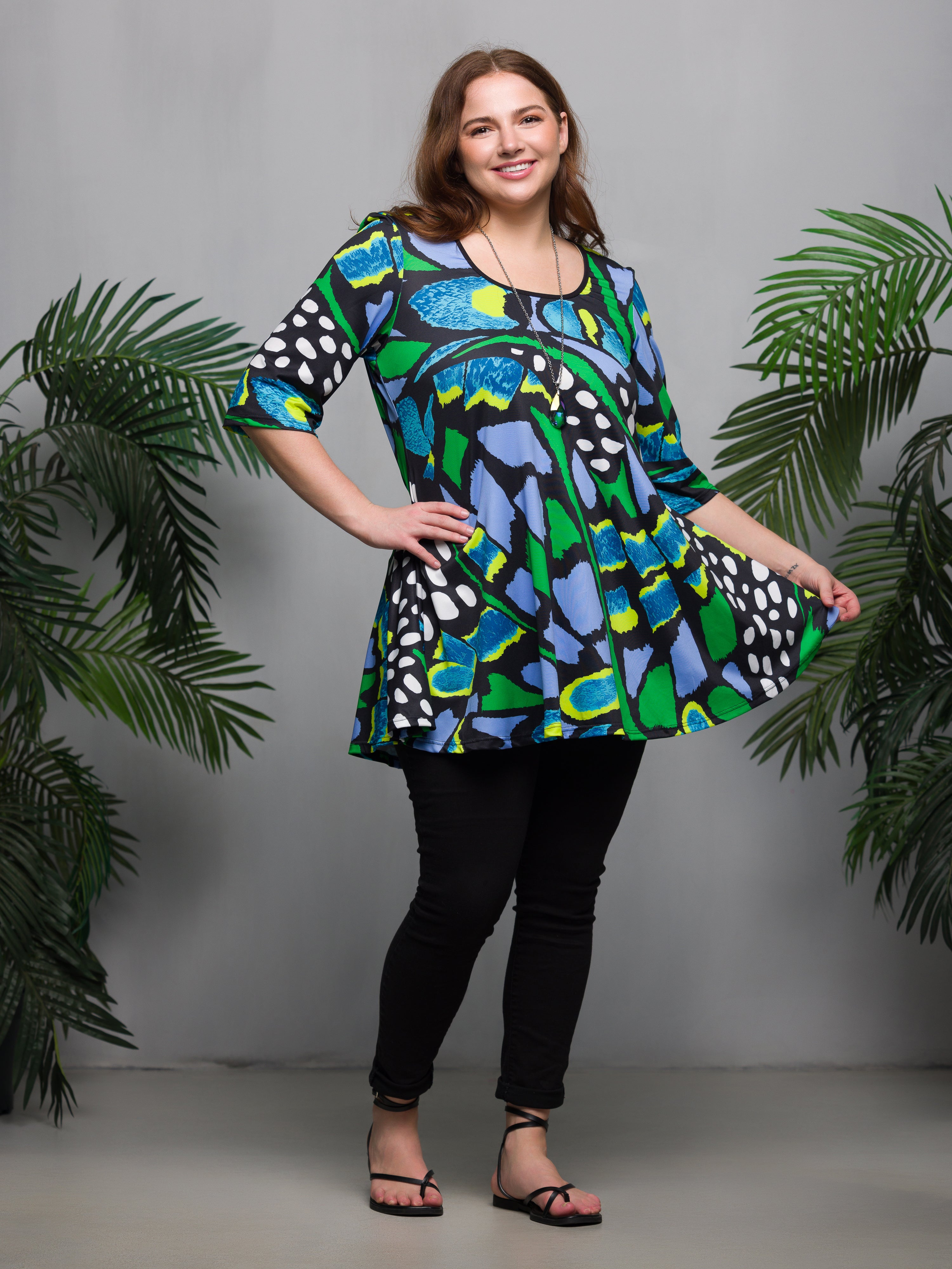 Essential Plus Size Blue Butterfly Print Elbow Sleeve Casual Tunic Top