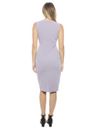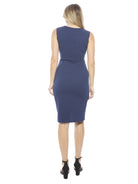 This sleeveless faux wrap midi dress from 24seven Comfort Apparel features a flattering V neckline, midi length, and a graceful tulip hem for effortless elegance. Made from a smooth, slightly textured fabric with a lightly structured look, the slim fit skims the body without feeling tight. Breathable and comfortable, it is machine washable and tumble dry for easy care.