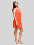 Stay cool and stylish with this sleeveless mini shift dress from 24seven Comfort Apparel. Featuring a classic round neckline and relaxed fit, this effortless style flatters every figure. Crafted from smooth, slightly textured stretch fabric with a structured drape that holds its shape, it is perfect for casual outings. Machine washable and tumble dry for easy care.